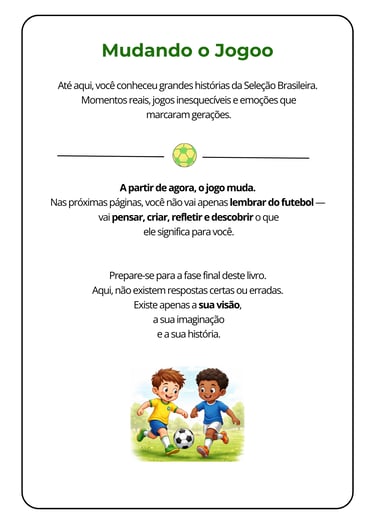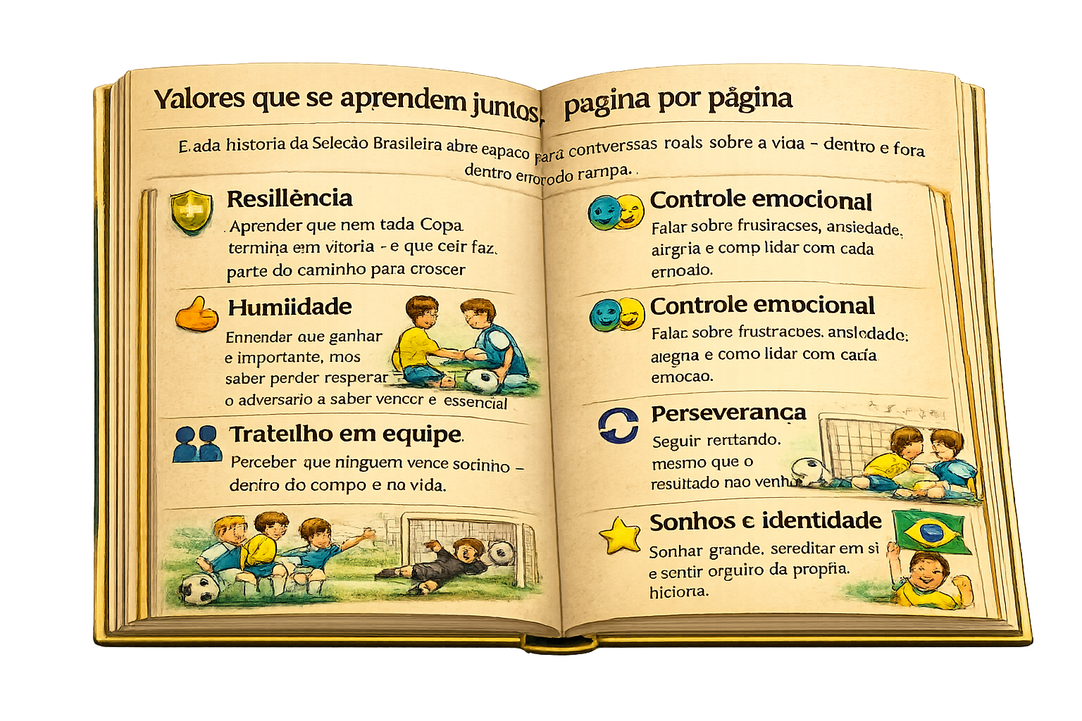 Este livro transforma cada história da Seleção Brasileira em um momento para compartilhar, aprender e crescer juntos.