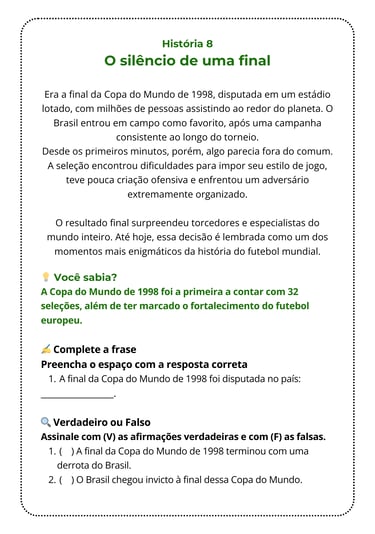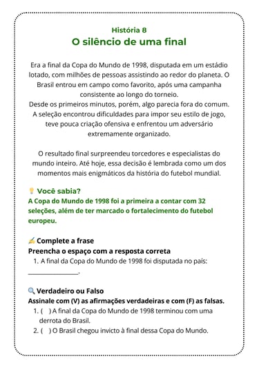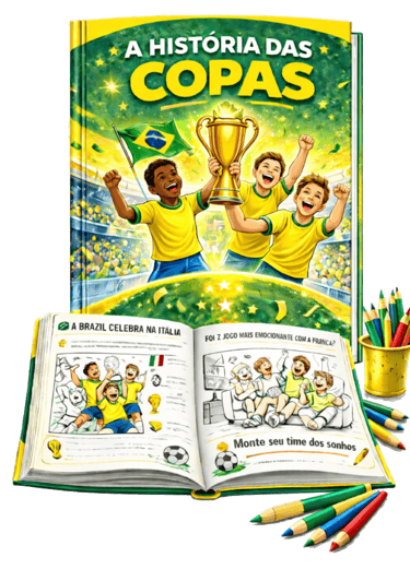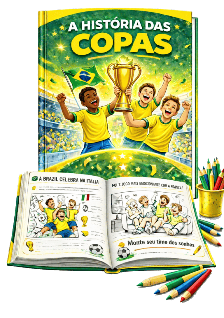 A HISTÓRIA DAS COPAS transforma a jornada da Seleção Brasileira nos Mundiais nas 25 maiores histórias da sua trajetória, ilustradas para crianças, jovens e famílias — com atividades, perguntas e desenhos para colorir, feitos para ler juntos.